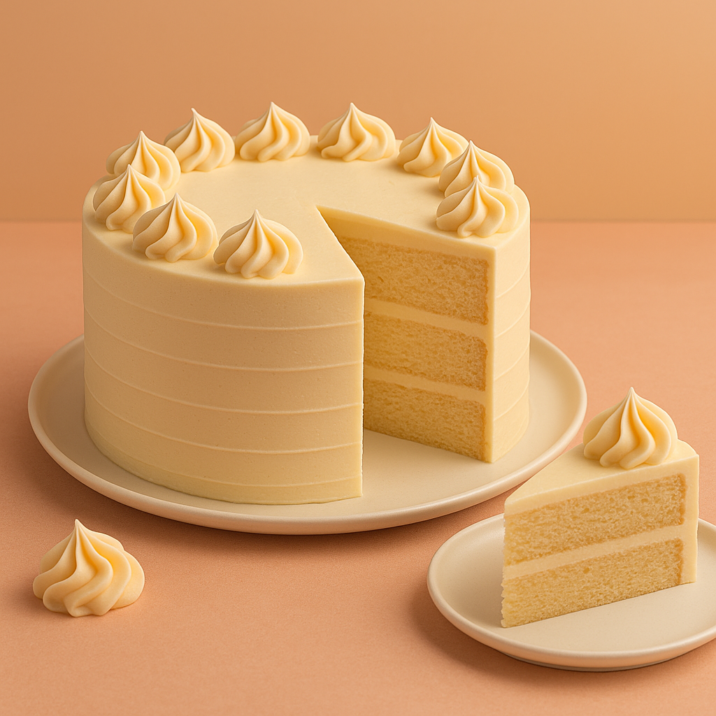 Soft, moist vanilla layers with silky buttercream frosting — pure simplicity that melts in every bite.